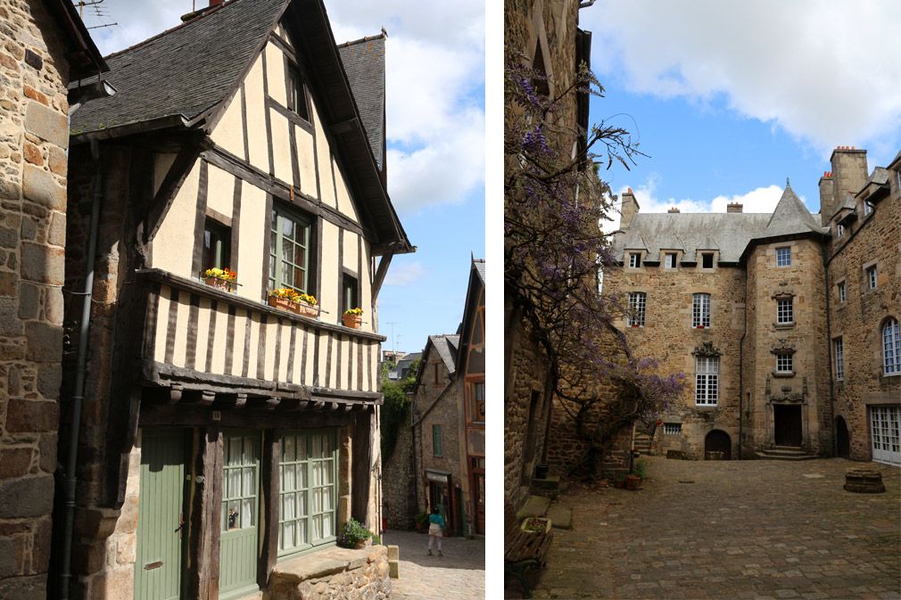 ce dernier jour en Bretagne, nous décidons de visiter le petit village médiéval de DinanEn . Dinan est complètement différent de Saint Malo. Ici, nous avons l’impression d’être dans une autre ère. Les maisons de Guingois, avec leurs cadres en bois et leur toit en ardoise grise, sont charmantes. Toutes les maisons du village sont sur le même modèle, ce qui donne un ensemble très harmonieux. Perché sur les remparts de la vieille ville, une vue magnifique vous permet d’admirer tout cela d’en haut.La promenade dans les rues pavées est très agréable : elle monte et descend. N’oubliez pas de mettre vos baskets, sinon vos pieds peuvent souffrir !